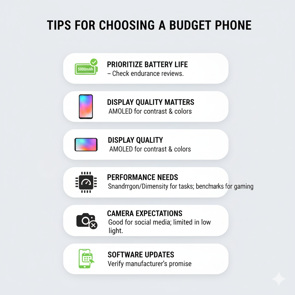 Performance Needs – Snapdragon or Dimensity chips handle everyday tasks well; check benchmarks if you game lightly.