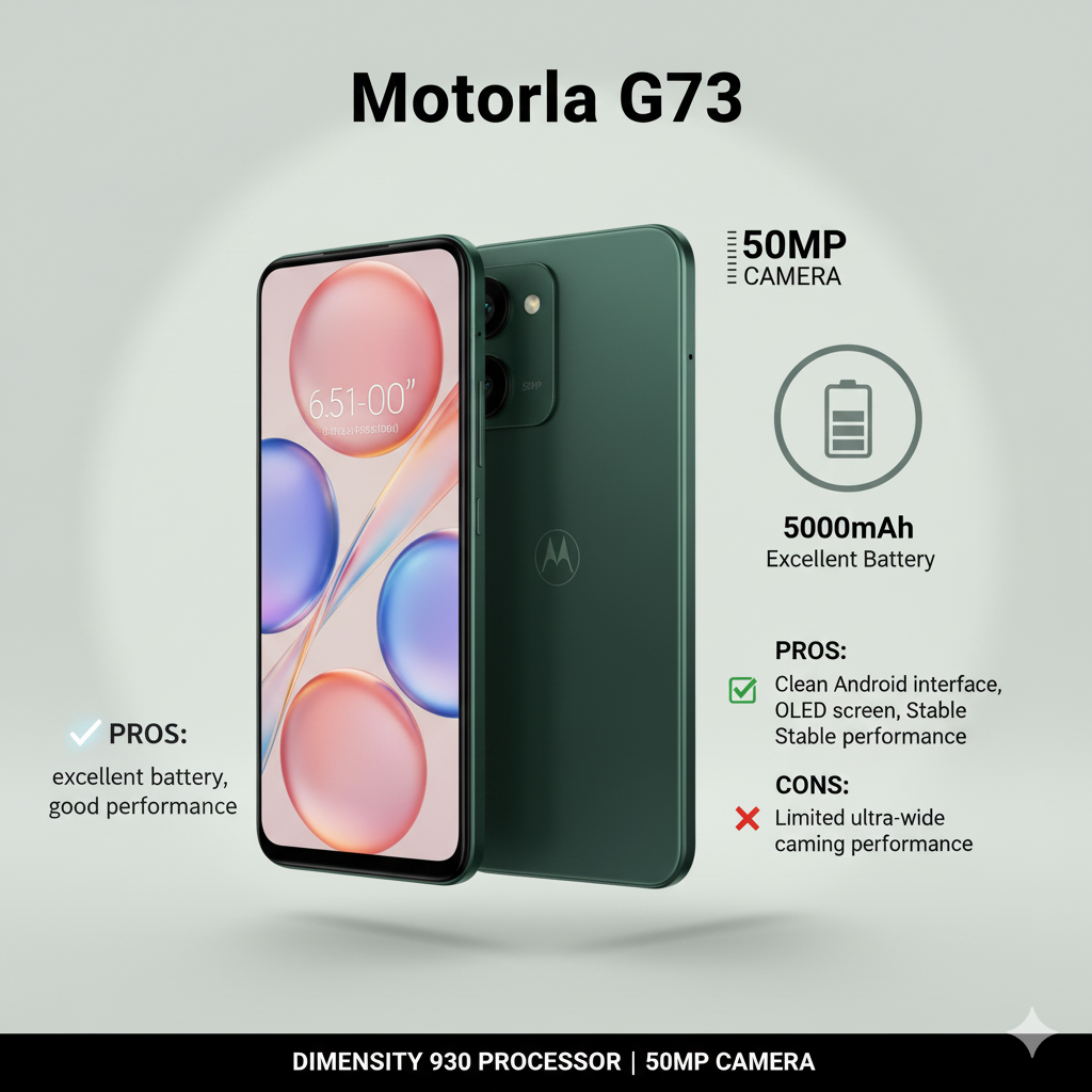 | Motorola G73 | 6.5″ OLED | Dimensity 930 | 5000mAh | 50MP | Clean Android & OLED |