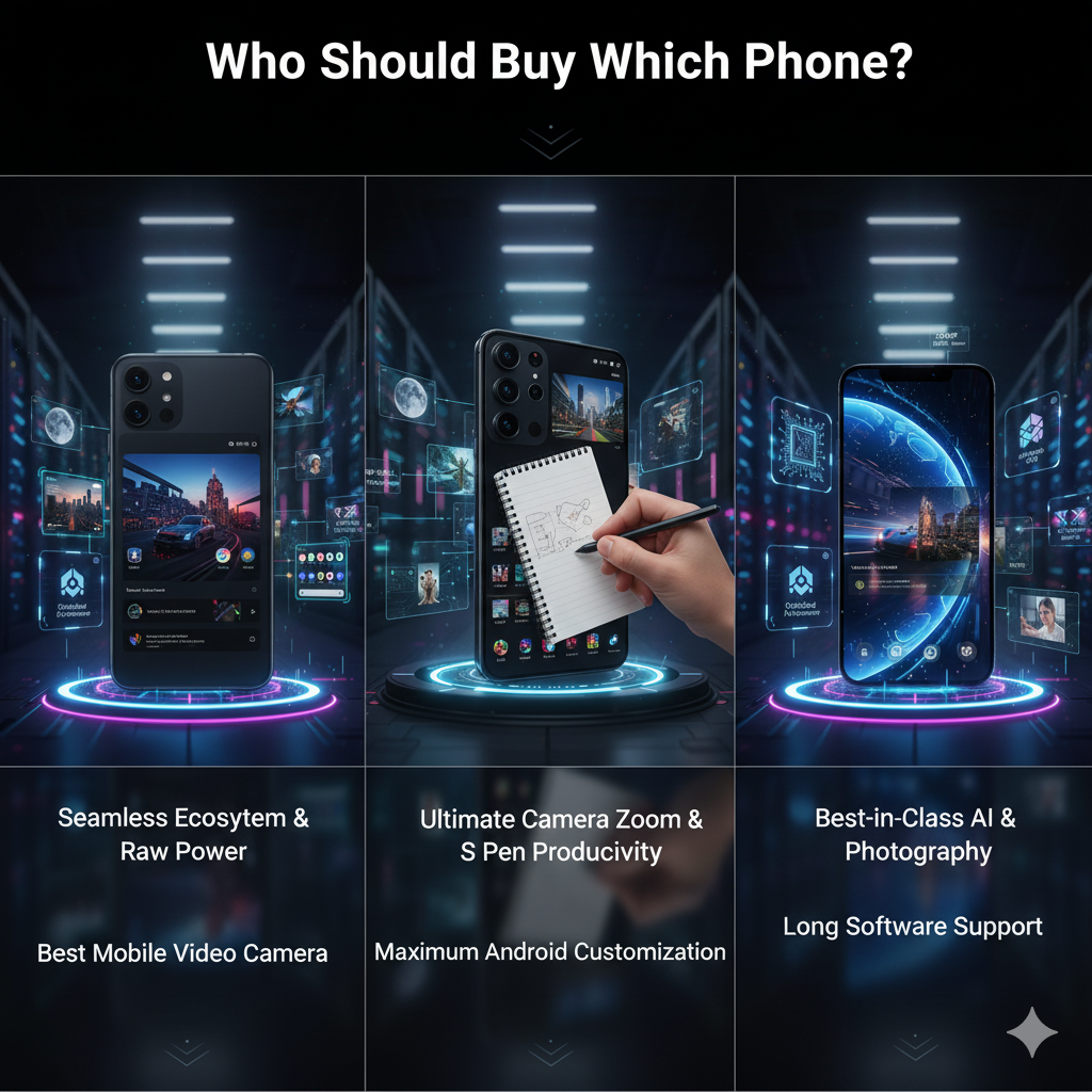 - Choose the Samsung Galaxy S25 Ultra if: You are a power user needing the S Pen for productivity, demand the most versatile camera zoom, and want maximum customization within the Android ecosystem.